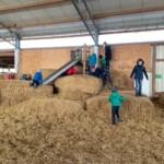 Anschließend wurde in der hofeigenen Strohburg mit Rutsche und Seilbahn noch ein wenig getobt. Da kam die Stärkung mit dem mitgebrachten Vesper gerade recht, schließlich musste noch genug Kraft für den Rückweg nach Grötzingen gesammelt werden. Nachdem sich auch die Katze der Farm an einigen Streicheleinheiten der Kinder erfreuen durfte, ging es für alle in Richtung Heimat.