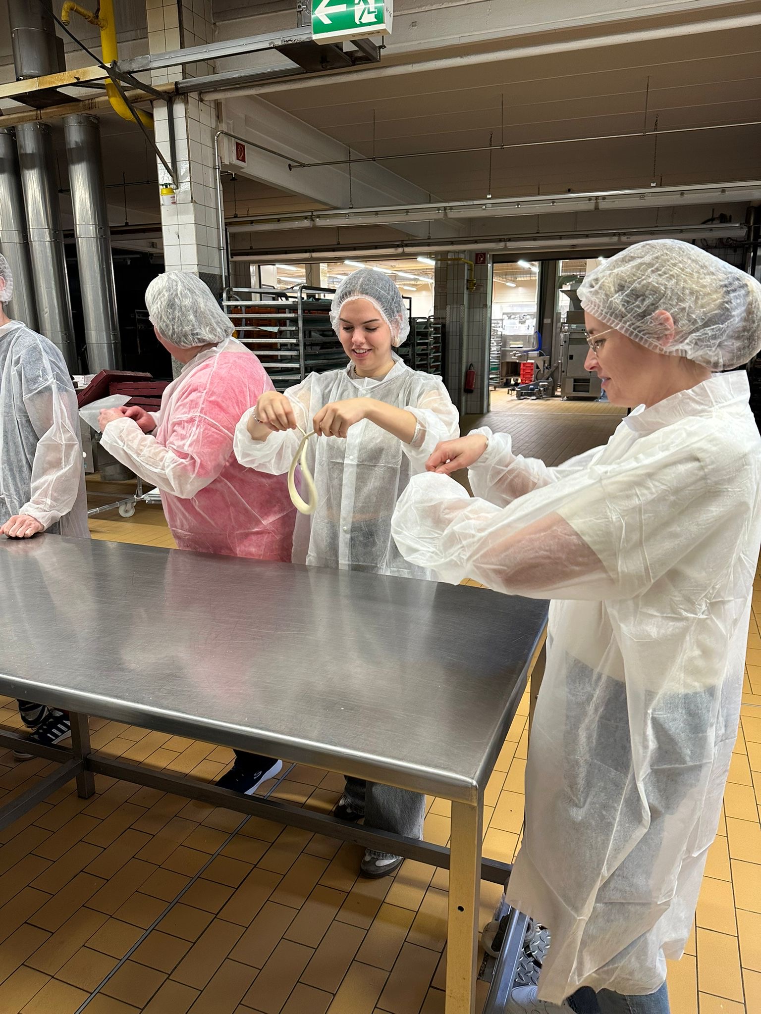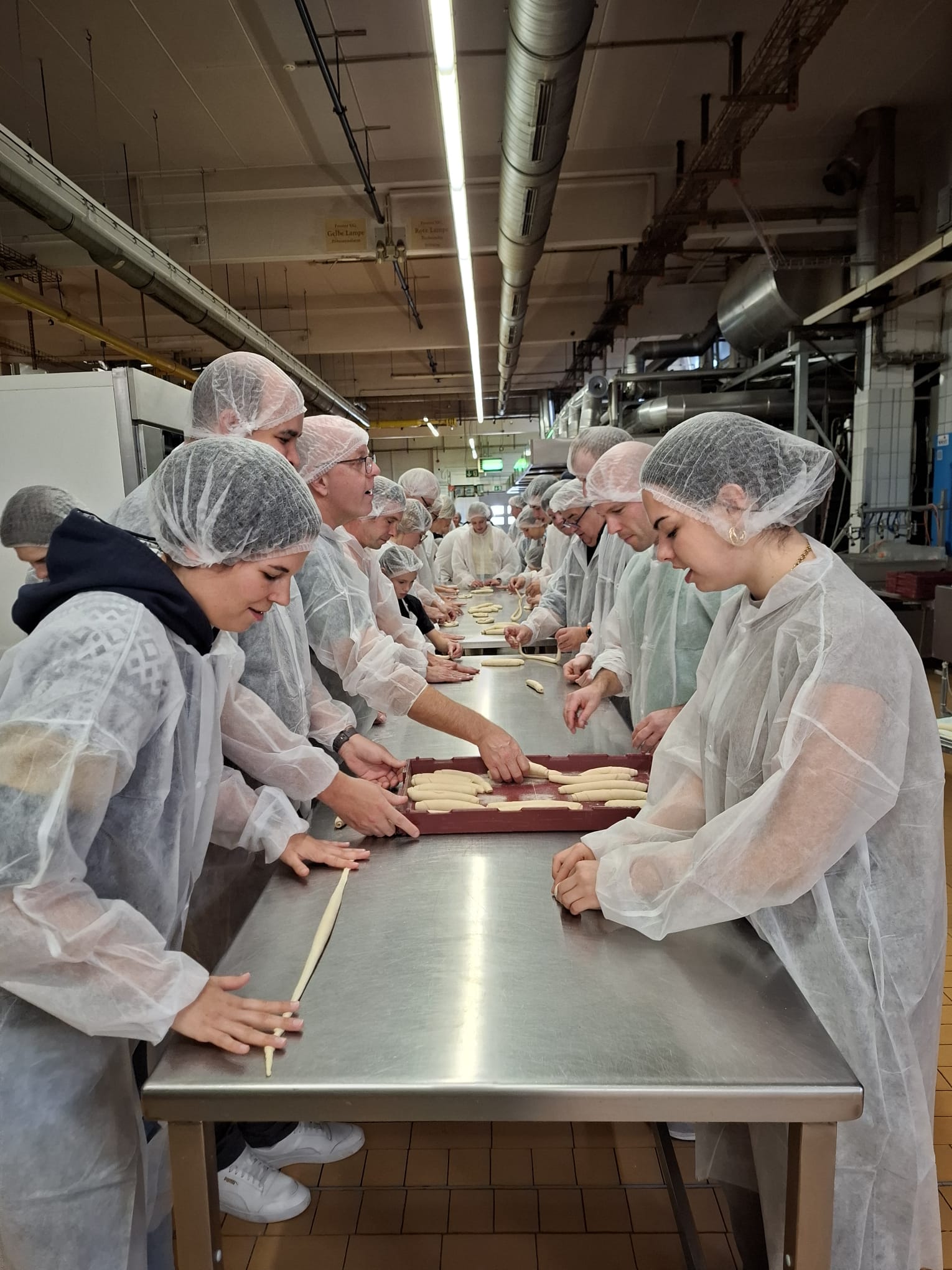 Während Brezeln und Brötchen im Gärraum und Ofen waren, bekamen wir noch eine Backstubenführung von Produktionsleiter Herr Dolde und dessen Stellvertreter Herr Conigliaro, bei der wir viel Wissenswertes zum Bäckerhandwerk und die Besonderheiten beim Bäckerhaus Veit wie zum Beispiel der eigene Anbau von Getreide, das eigene Mahlen von Getreide vor Ort sowie die hauseigene Saaten-Röstmaschine erfuhren.