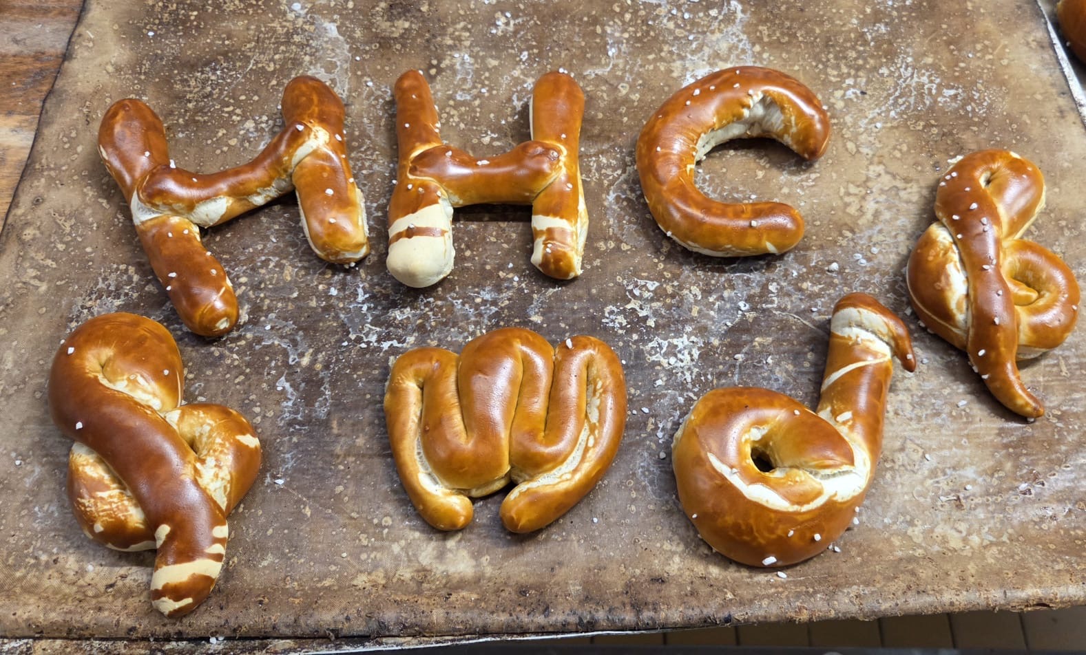 Vor Ort wurden wir herzlich empfangen und in die hohe Kunst des Brezelschlingens eingeführt. Klein bis Groß hatte viel Spaß dabei und neben den klassischen Brezeln wurden auch Knoten, Zöpfe und sogar unsere HHC Buchstaben sowie musikalische Motive wie Notenschlüssel etc. aus Teig geformt. Nach dem Laugengebäck durften wir auch noch Seelen, Brötchen und vieles mehr aus Dinkelteig formen.
