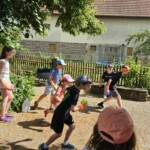 Eine Kombination aus Sport und Wasser wurde an zwei anderen Stationen geboten: Beim Brunnen gegenüber der Weiherbachschule mussten Eimer mit Wasser gefüllt werden und bei der Station „Wasserbomben“ ging es nicht nur ums Werfen – auch das Fangen der Wasserbomben war Teil der Aufgabe.