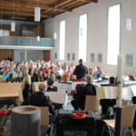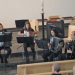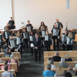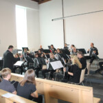 Unser Erstes Orchester eröffnete das Konzert mit der Ouvertüre zur Oper „Der Barbier von Sevilla“ von Gioachino Rossini gefolgt von den schönsten Melodien aus dem Filmmusical La La Land. Im Anschluss folgte eine ganz besondere Premiere: Das erste Konzert unseres neu gegründeten Jugendensembles. Unser Ensemble setzt sich aus acht Jugendlichen und jungen Erwachsenen zusammen, die erst seit Februar in dieser Besetzung als Ensemble und ohne Dirigenten proben. Sie verzauberten das Publikum mit Trumpet Voluntary von Jeremiah Clarke, der Barcarole aus den “Drei Epigrammen”, “You’ll be in my Heart” von Phil Collins aus dem Musical Tarzan und dem rasanten Freilach Dance zum krönenden Abschluss. Dafür heimsten sie sich auch einen ordentlichen Applaus ein und das zu Recht.